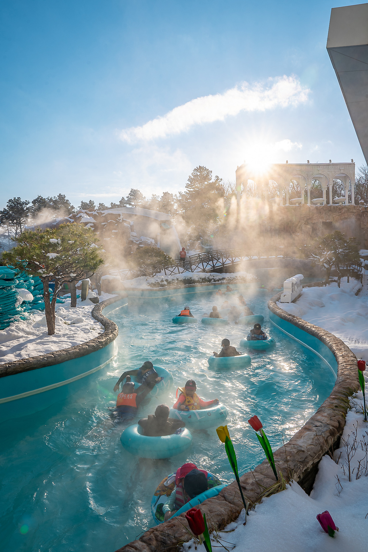눈이 노는 날 온천수로 워터슬라이드도 운영한다고 한다.